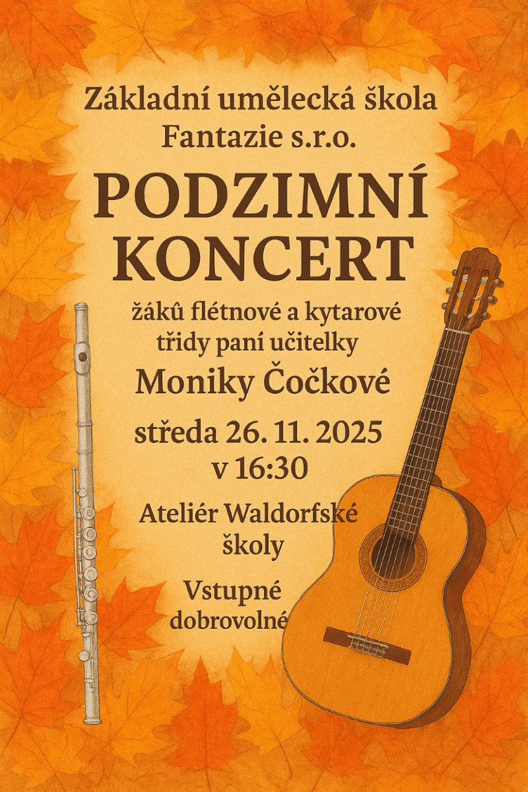 Vystoupí žáci a pedagogové ZUŠ Fantazie. Představí se pěvecký sbor ZUŠ Fantazie a Waldorfské školy Olomouc složený z řad žáků, učitelů, rodičů a přátel školy pod vedením Františka Tomka.